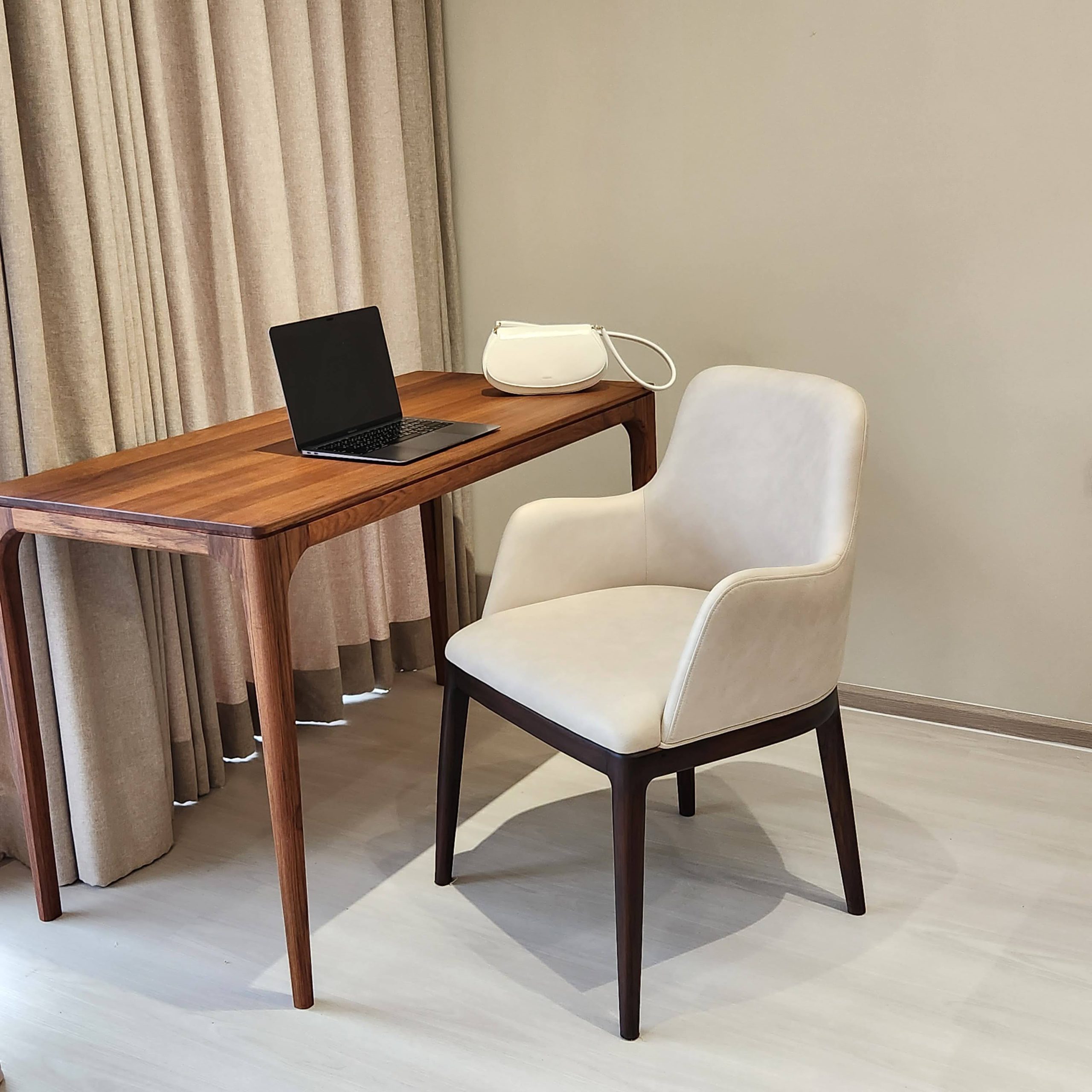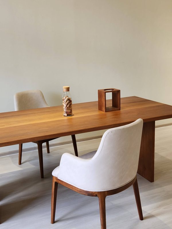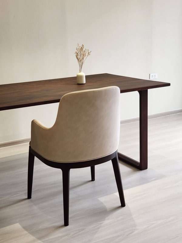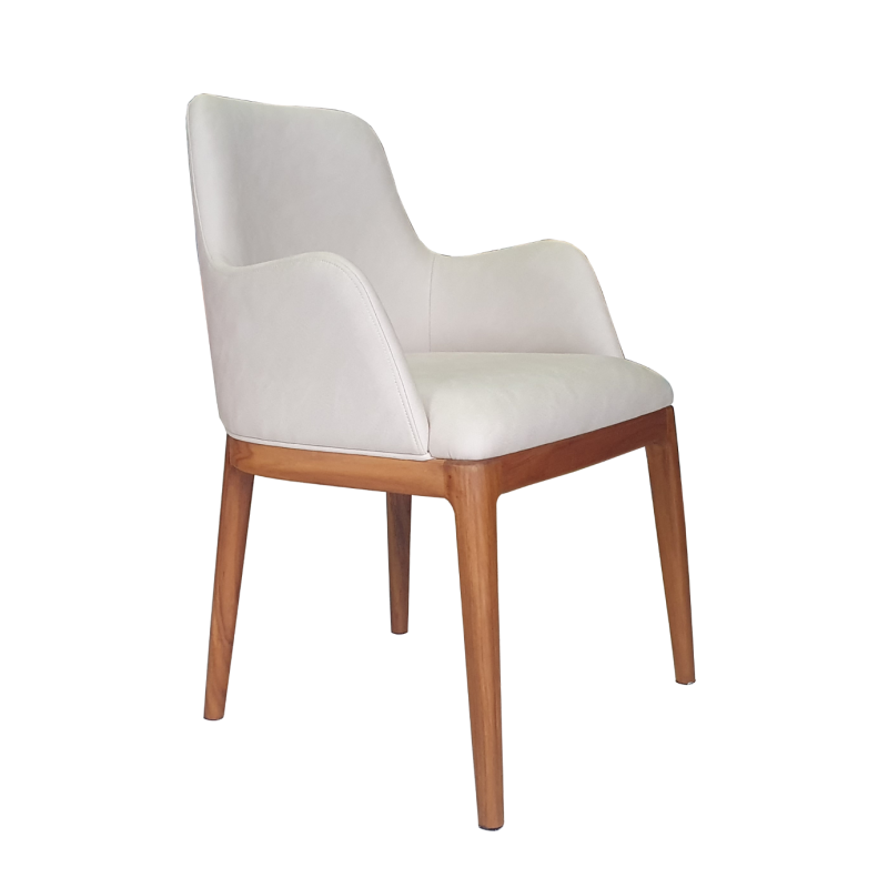 เก้าอี้นั่งทานข้าว รุ่น Amber ดีไซน์เรียบหรู มีที่พักแขน เหมาะสำหรับจับคู่กับโต๊ะที่มีหน้าโต๊ะเป็นวัสดุที่ทำจากไม้จริงทุกชนิด