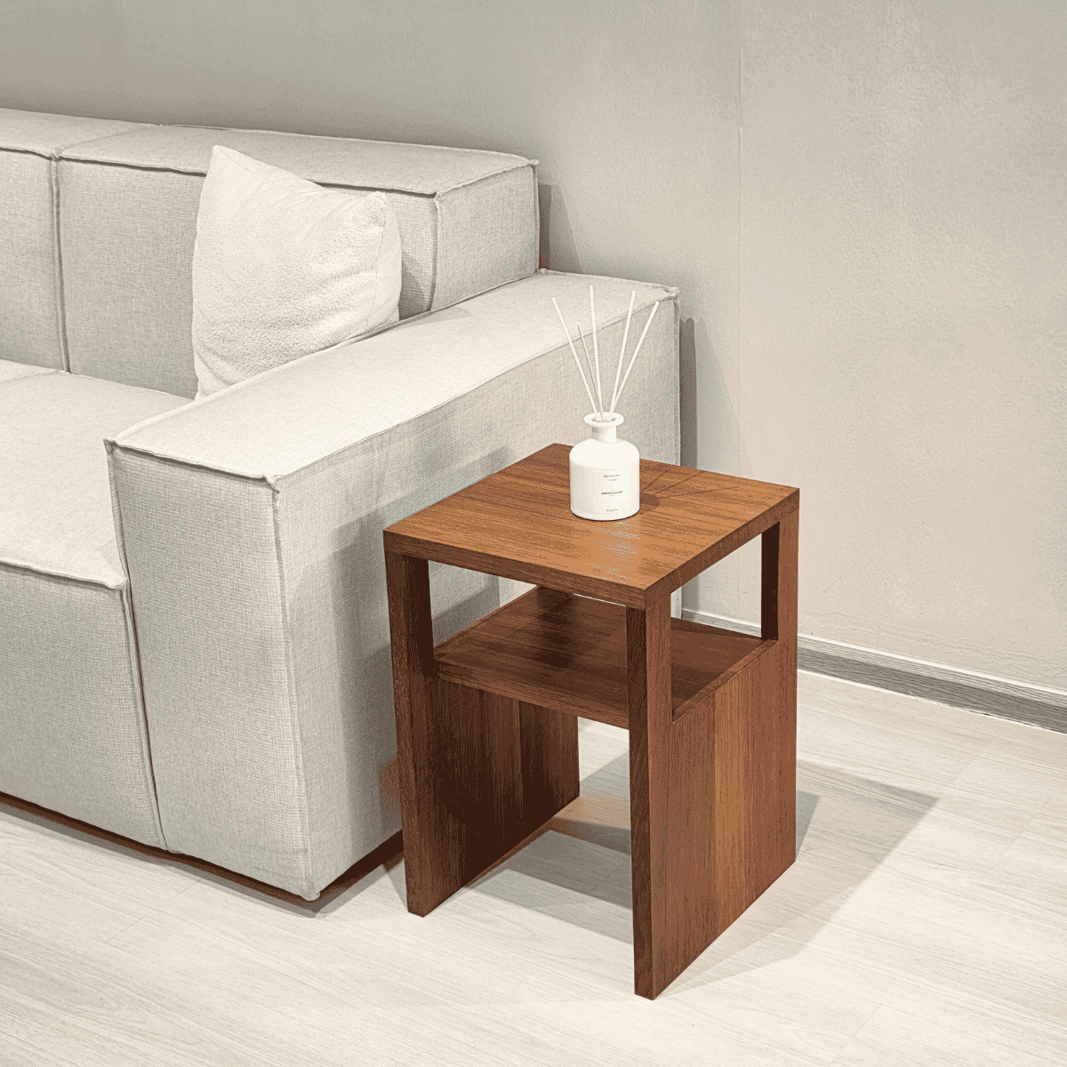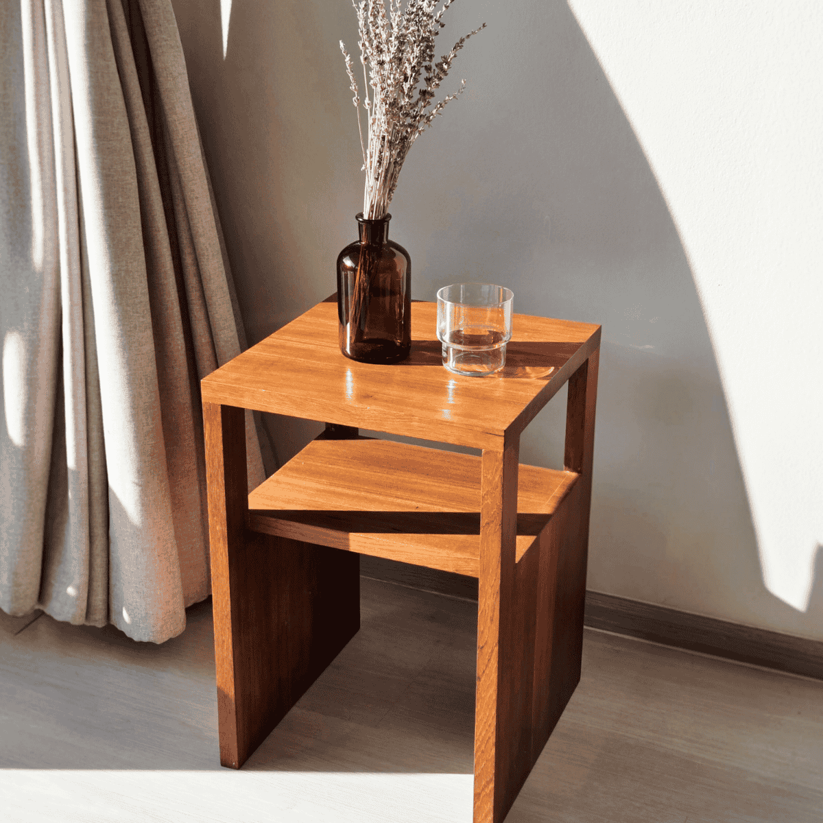 โต๊ะข้างไม้สักทองพม่าที่ถ่ายทอดความเรียบง่ายอย่างตั้งใจ สัดส่วนกะทัดรัดช่วยให้จัดวางได้อย่างกลมกลืน ไม่ว่าจะข้างเตียงหรือข้างชุดโซฟา ผิวไม้จริงเผยลายไม้ตามธรรมชาติ เติมรายละเอียดที่พอดี เพื่อให้พื้นที่ดูสงบ เป็นระเบียบ และน่าใช้งานในทุกวัน