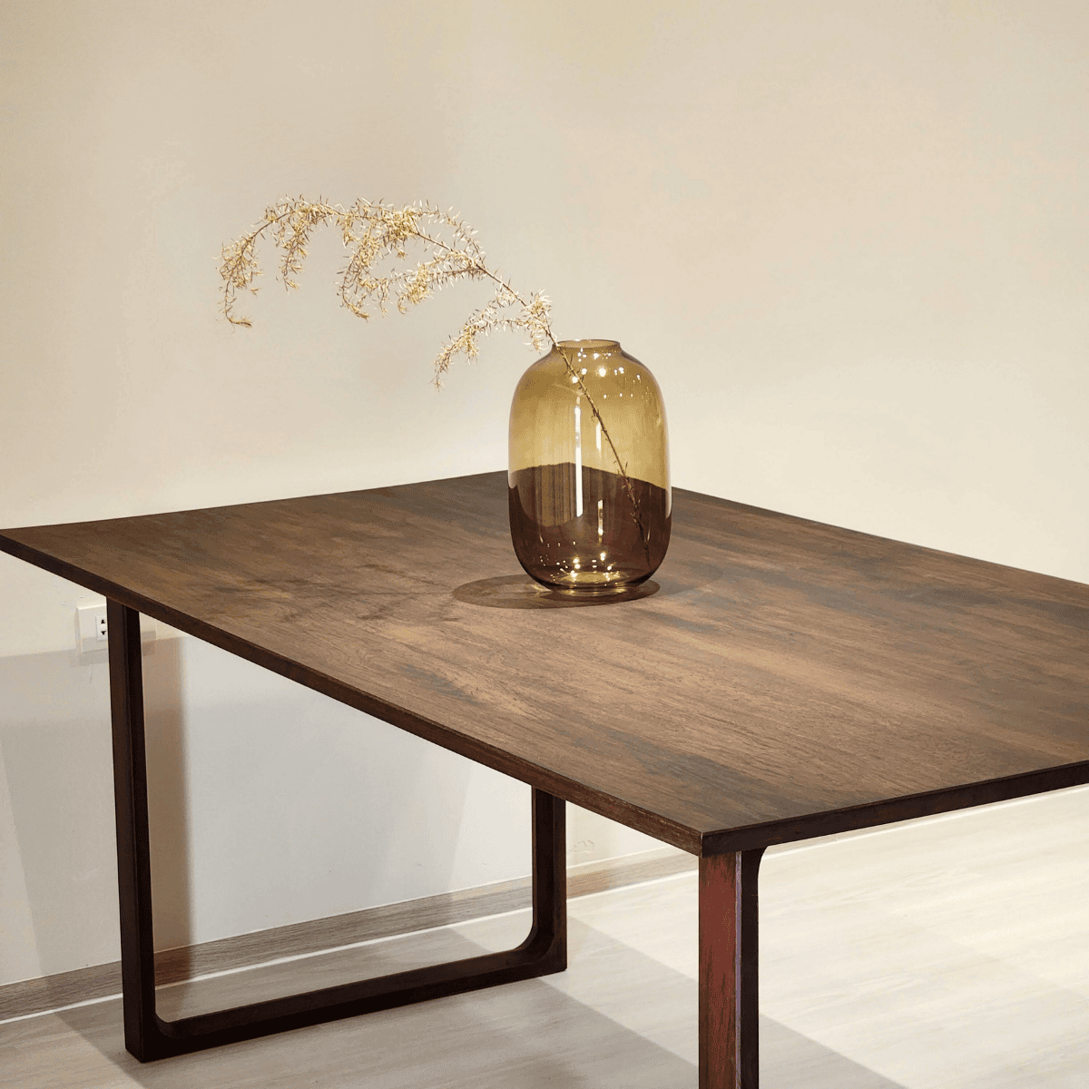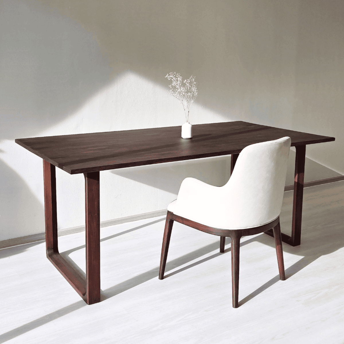 โต๊ะไม้สักที่ถ่ายทอดความเรียบเท่ผ่านโครงสร้างที่ชัดเจน เส้นสายตรงไปตรงมา แต่โดดเด่นด้วยดีไซน์ขาโต๊ะที่มีคาแร็คเตอร์เฉพาะตัว ผลิตจาก ไม้สักทองพม่าแท้ หน้าโต๊ะหนา 1 นิ้ว ให้ความรู้สึกแข็งแรง มั่นคง เหมาะสำหรับทั้งโต๊ะทานอาหารและโต๊ะทำงานในพื้นที่ร่วมสมัยที่ให้คุณค่ากับวัสดุแท้และงานออกแบบ