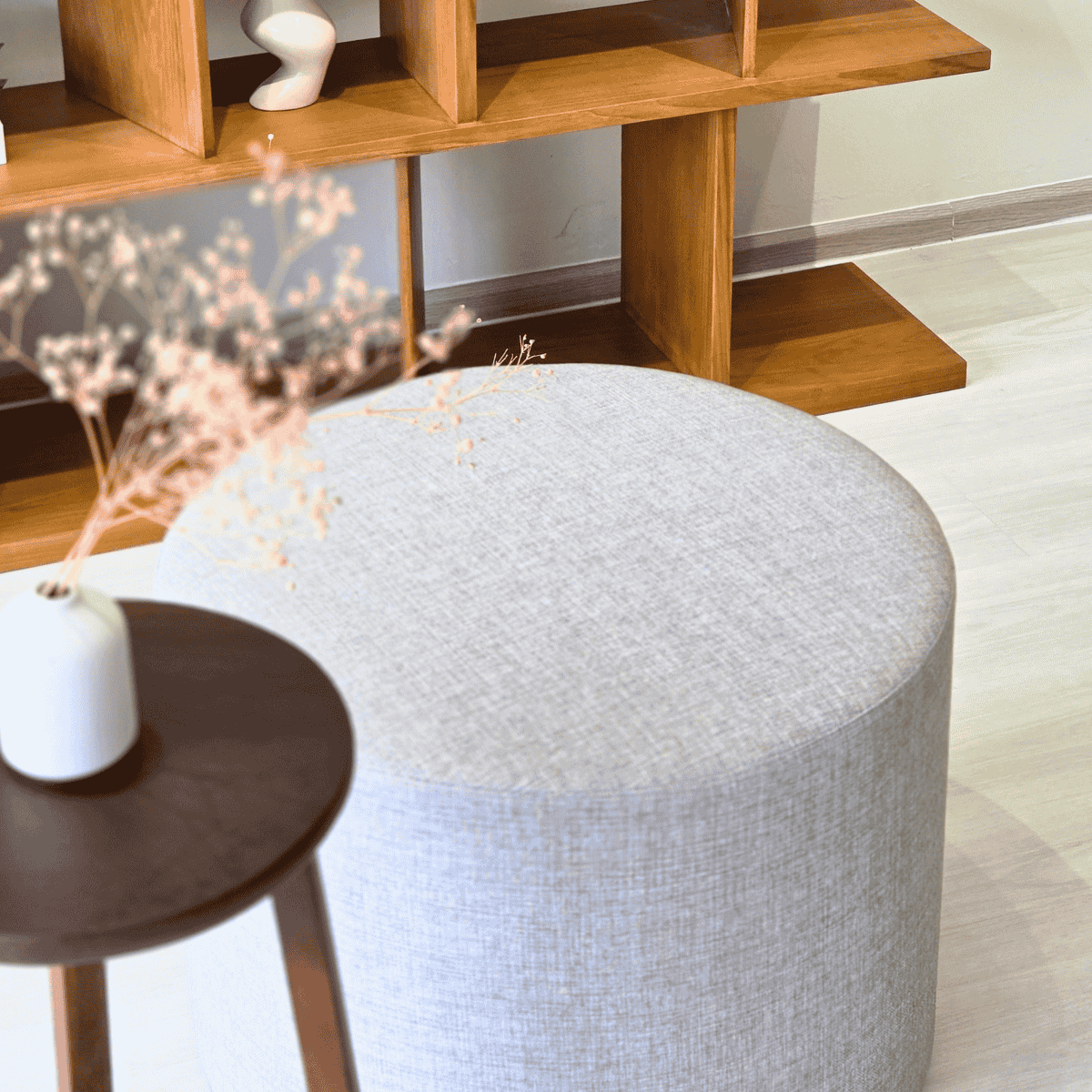 เก้าอี้นั่งเล่นทรงกระบอก ดีไซน์เรียบหรูด้วยงานหุ้มแบบล้มตะเข็บ ช่วยเพิ่มมิติและความนุ่มนวลให้พื้นที่ เหมาะสำหรับจัดวางเข้าชุดกับโซฟาในห้องนั่งเล่น ใช้เป็นที่นั่งเสริมหรือที่พักเท้า เติมความกลมกลืนให้บรรยากาศโดยรวม สามารถเลือกหุ้มได้ทั้งผ้า VC Fabric, PASAYA หรือหนัง Zoft Leather ตามสไตล์ที่ต้องการ