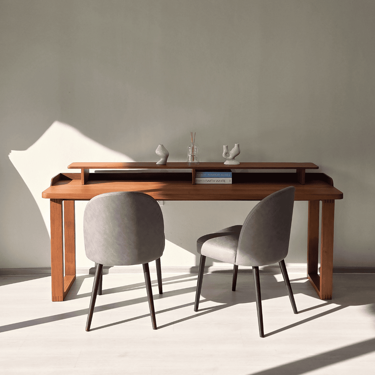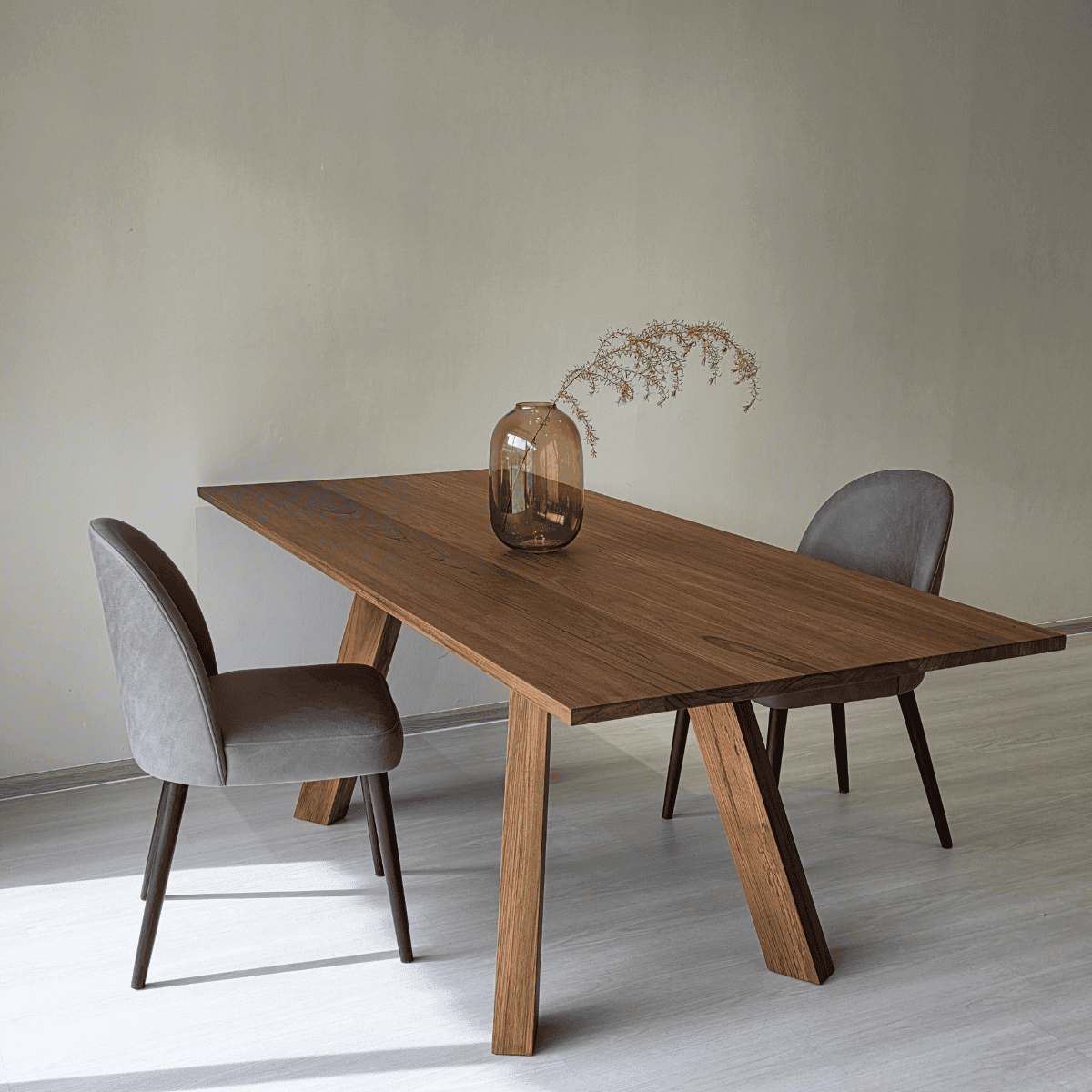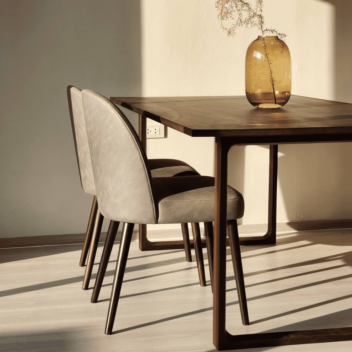 เก้าอี้ทานอาหารดีไซน์เรียบหรูที่เน้นความคล่องตัวในการใช้งาน โครงขาไม้สักให้สัมผัสอบอุ่นและมั่นคง ดีไซน์แบบไม่มีที่พักแขนช่วยให้ลุกนั่งสะดวกและจัดวางได้อย่างยืดหยุ่น เหมาะสำหรับจับคู่กับโต๊ะที่มีหน้าโต๊ะเป็นไม้จริงหรือหิน สามารถเลือกสีขาไม้สักธรรมชาติ หรือสีวอลนัท และเลือกวัสดุหุ้มได้ทั้งผ้า VC Fabric, PASAYA หรือหนัง Zoft Leather