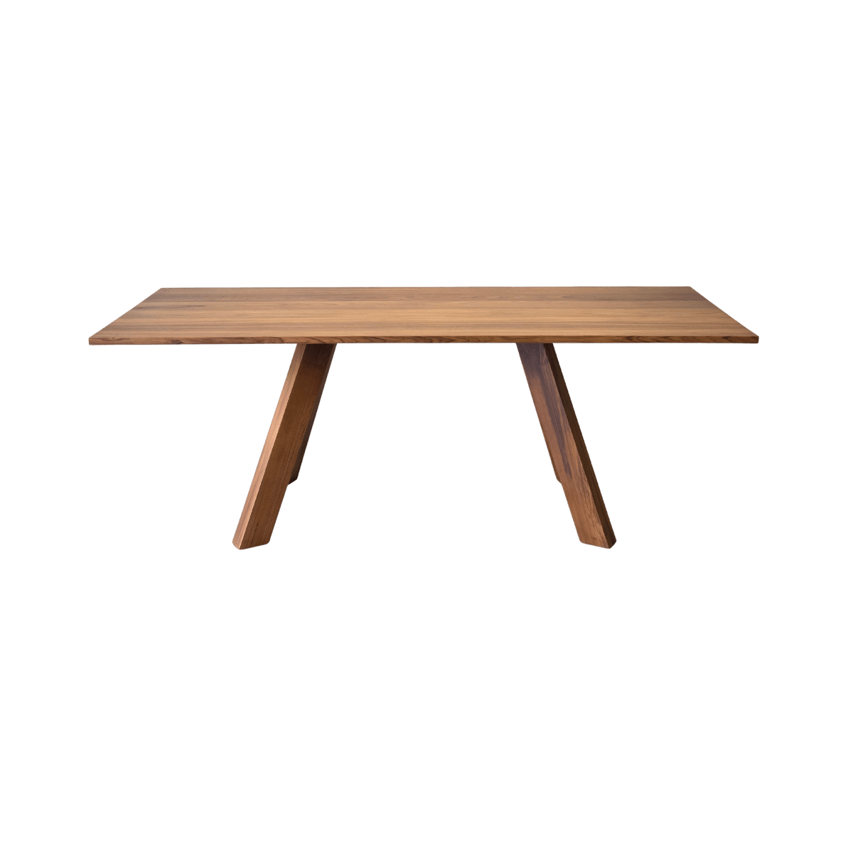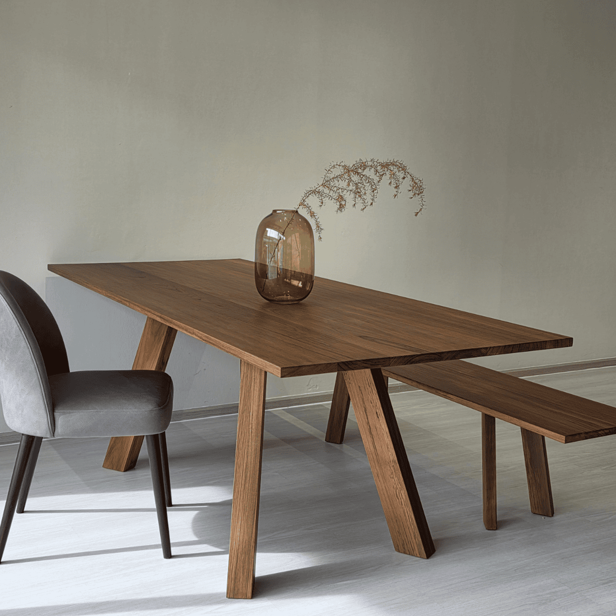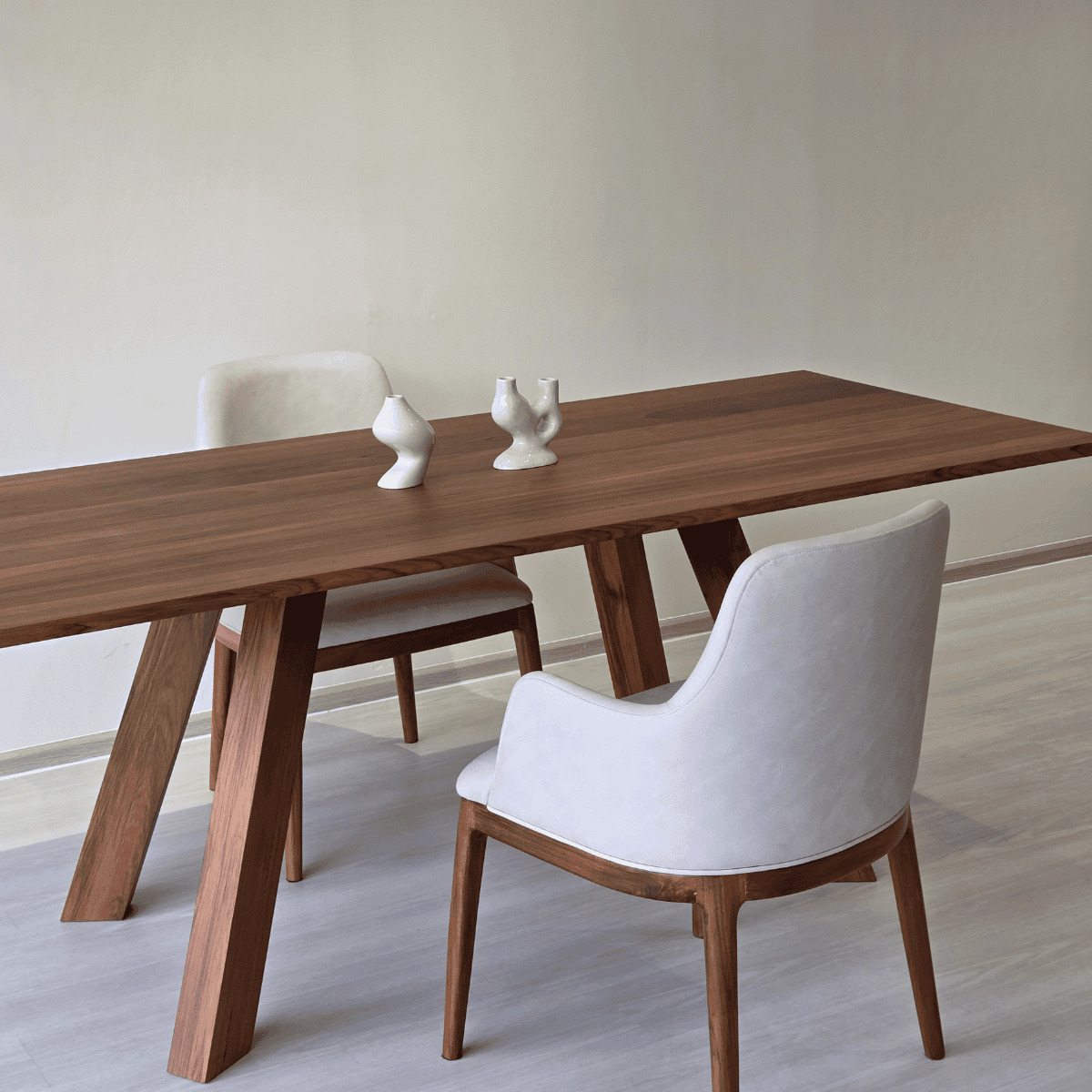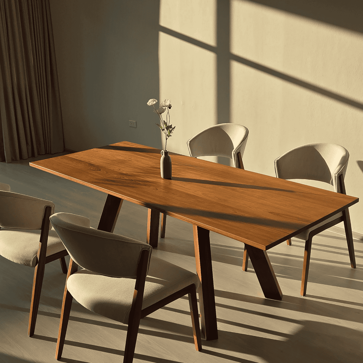 โต๊ะไม้สักแท้ที่สะท้อนความเรียบง่าย ผ่านสัดส่วนที่สมดุลและงานดีไซน์ที่ชัดเจน ขาโต๊ะเอียงทำมุม 30 องศา สร้างทั้งเอกลักษณ์และความมั่นคงในโครงสร้าง โดยไม่ต้องพึ่งรายละเอียดที่เกินจำเป็น เหมาะสำหรับใช้เป็นโต๊ะทานอาหาร โต๊ะทำงาน หรือโต๊ะประชุม เข้ากับชุดม้านั่ง Raven Bench ได้อย่างลงตัว นับว่าเป็น Iconic Furniture ประจำบ้าน