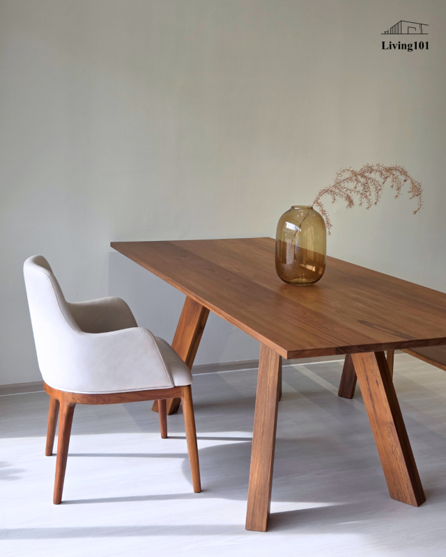 Raven Table โต๊ะไม้สักที่ออกแบบตามคอนเซป “Less is more” โต๊ะนี้เหมาะมากไม่ว่าจะใช้เป็นโต๊ะทานข้าว ทำงาน หรือประชุมก็เหมาะ โดยมีเอกลักษณ์อยู่ที่ขาสไตล์ Solid Teak ทั้งสี่ข้างที่เอียงทำมุม 30 องศาออกจากกลางโต๊ะ และลาดเอียงไปจนถึงพื้น เข้าชุดกับม้านั่ง Raven Bench เหมาะสำหรับใช้เป็นเฟอร์นิเจอร์ iconic ประจำบ้าน